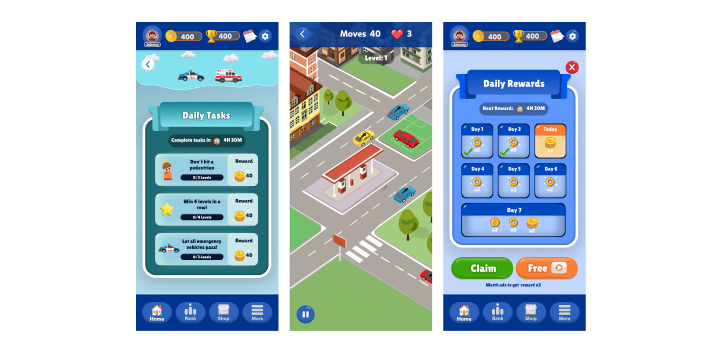 Game UI exploration inspired by real traffic behavior in African cities, focused on movement logic, player feedback, and illustration design.